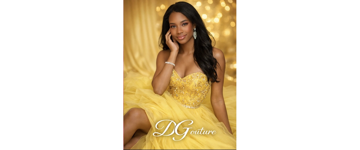 Yellow Hans-Stoned Custom Evening Luxury Gown with Should..